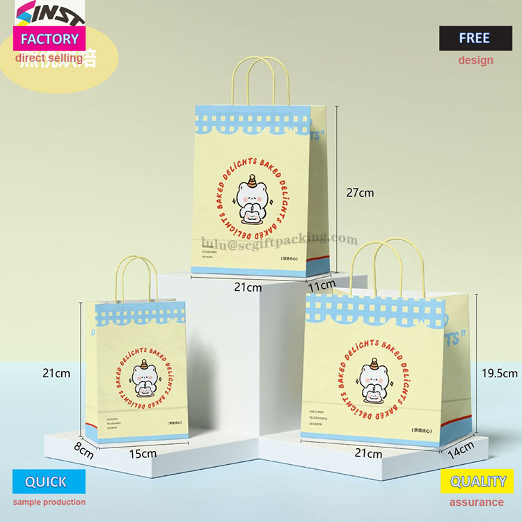 ব্যাগের পাশটি "বেকিং" এবং "কেক" এর মতো লোগোগুলির সাথে সংহত করা হয়েছে, উপহার ব্যাগের এক্সক্লুসিভিটি এবং গুণমান বাড়ানোর জন্য স্বাভাবিকভাবেই ব্র্যান্ড উপাদানগুলিকে মিশ্রিত করে। এই উপহার ব্যাগটি বিভিন্ন আকারে উপলভ্য, ছোট কেক, ডিমের যোগ উপহার বাক্স এবং অন্যান্য উপহারের আকারগুলি covering েকে রাখে। এটি পারিবারিক উপহার বা জন্মদিনের পার্টির বিতরণ হোক না কেন, আপনি সঠিক আকার, ব্যবহারিক এবং বিবেচ্য সন্ধান করতে পারেন।