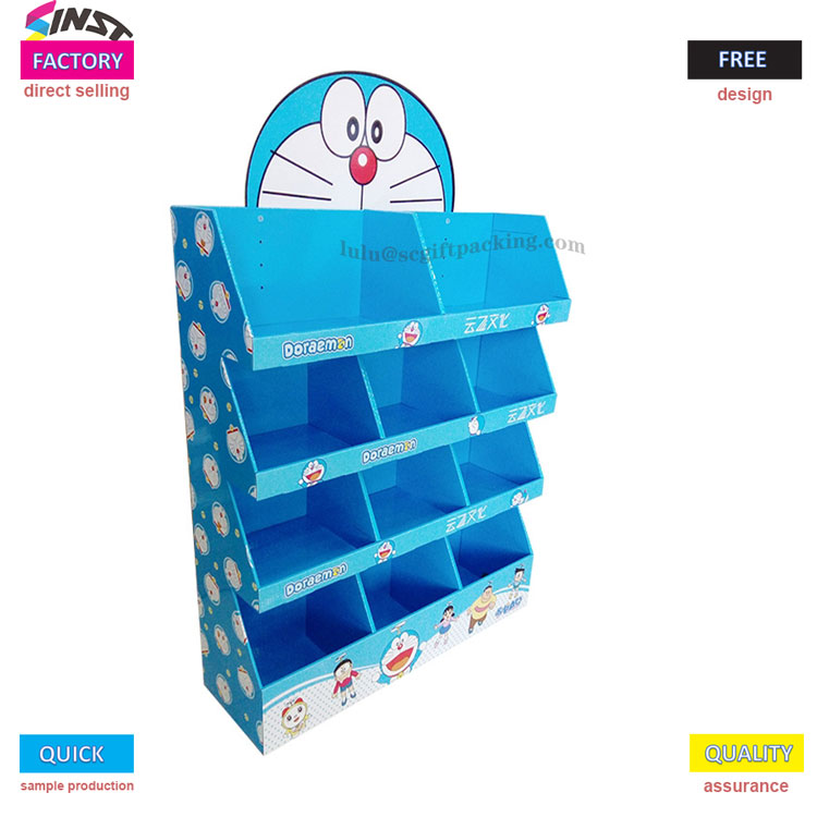 এই শপিংমল বিস্কুট কার্ডবোর্ড ডিসপ্লে র্যাকটি সুপারমার্কেট, সুবিধার্থে স্টোর বা বেকারিগুলির জন্য উপযুক্ত, এতে উজ্জ্বল নীল টোন এবং কার্টুন গ্রাফিক্সের বৈশিষ্ট্য রয়েছে। সামঞ্জস্যযোগ্য ডিভাইডার সহ চারটি স্তরযুক্ত গ্রিড ডিজাইন কুকিজ, ট্রিটস বা স্ন্যাকসের নমনীয় সংস্থার জন্য শেল্ফ স্পেস দক্ষতা সর্বাধিক করে তোলে।