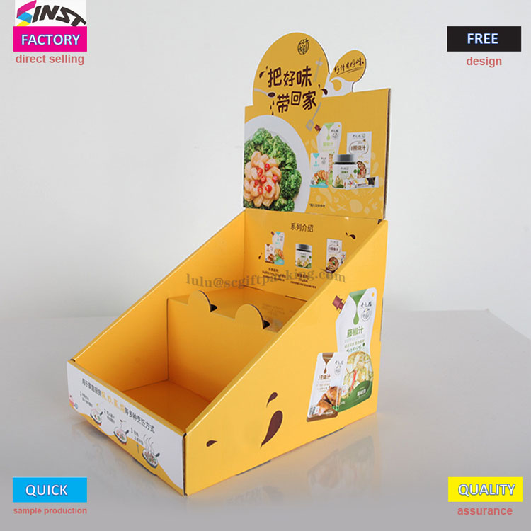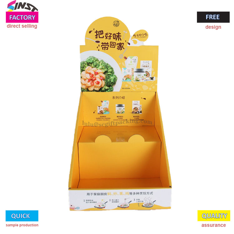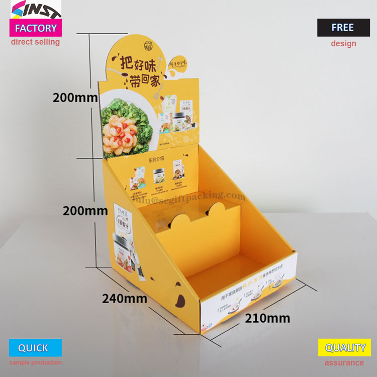 এটি একটি সুপারমার্কেট সিজনিং কাউন্টারটপ কার্ডবোর্ড ডিসপ্লে বাক্স, যা একটি গোলমরিচ প্রদর্শন বাক্স, লবণ প্রদর্শন বাক্স, মুরগির এসেন্স ডিসপ্লে বাক্স ইত্যাদি হতে পারে এটি মূলত উজ্জ্বল হলুদ বর্ণের মধ্যে রয়েছে এবং কাউন্টারটপ ডিসপ্লেটির জন্য চিত্তাকর্ষক সরঞ্জাম হয়ে উঠেছে!