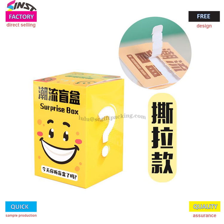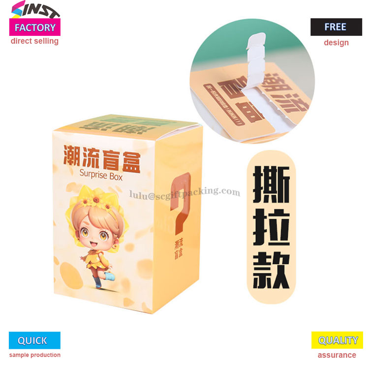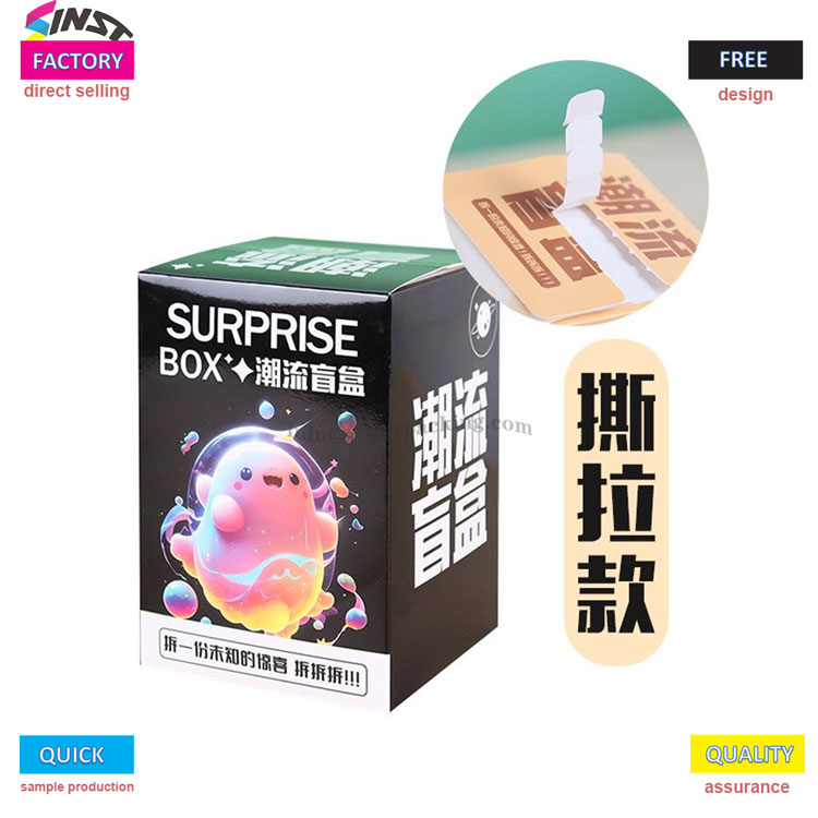 এটি ইনস্টাগ্রাম স্টাইল এবং উচ্চ নান্দনিক মান সহ কার্ড বক্সের একটি ট্রেন্ডি ডল ব্লাইন্ড বক্স টিয়ার অফ। টিয়ার অফ ডিজাইন এই পণ্যটি কেনা গ্রাহকদের জন্য একটি উত্তেজিত এবং রহস্যময় অনুভূতি তৈরি করে, উপহারটিকে আরও মনোমুগ্ধকর করে তোলে! এই অন্ধ বাক্সটি ঘন সাদা কার্ডের উপাদান দিয়ে তৈরি, যা এর গ্রেডকে হাইলাইট করে;
